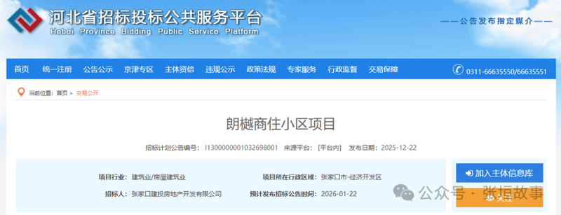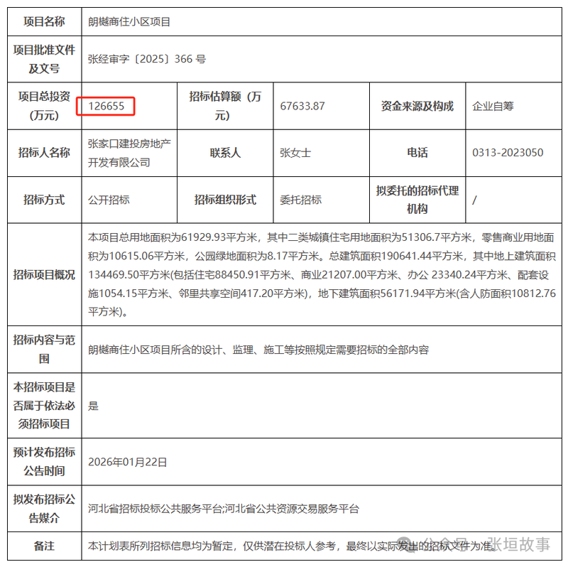 近日,河北招標網(wǎng)站發(fā)布消息:張家口一個投資總額12.65億元的商住小區(qū)開始招標,項目名稱為朗樾商住小區(qū),招標內(nèi)容包含項目的設(shè)計、施工、監(jiān)理等。
